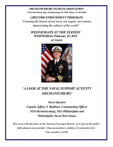 Join Captain Jeffery T. Rathbun, Commanding Officer NSA Mechanicsburg, NSA Philadelphia and Philadelphia Naval Yard Annex, as he will be our guest speaker presenting this program.