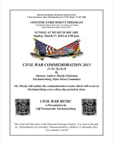Civil War Commemoration 2013 (June 28, 29, 30) by Attorney Andrew Sheely, Chairman of the Mechanicsburg Main Street Committee