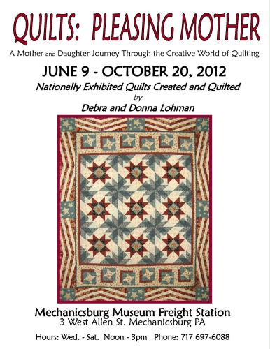 Visit the Museum's newest exhibit, Quilts: Pleasing Mother. A mother daughter journey through the creative world of quilting at the Mechanicsburg Museum Freight Station. Admission is free and the exhibit runs until October 20, 2012.
