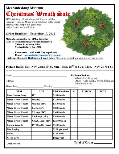 MMA is taking orders for beautiful, fragrant holiday wreaths. These are Mixed green wreaths of noble fir and incense cedar, juniper and pine cones with a festive hand-made bow. Please see attached order form for details.