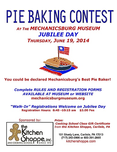 Join us at the Mechanicsburg Museum's Passenger Station on Jubilee Day for our annual Pie Baking Contest. You could be declared Mechanicsburg's Best Pie Baker! Complete rules and registration forms are available at the Museum or on our website, mechanicsburgmuseum.org.