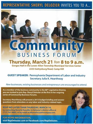 Rep. Sheryl Delozier invites you to a 'Community Business Forum'